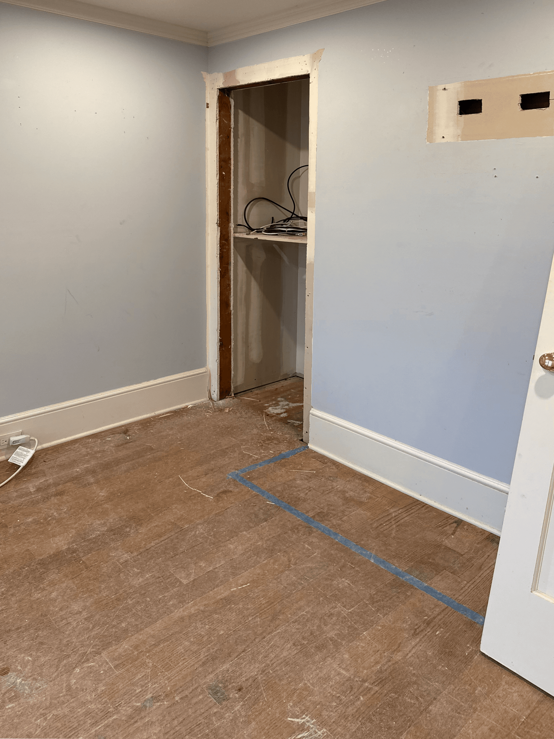 Wall replaced where closet door was